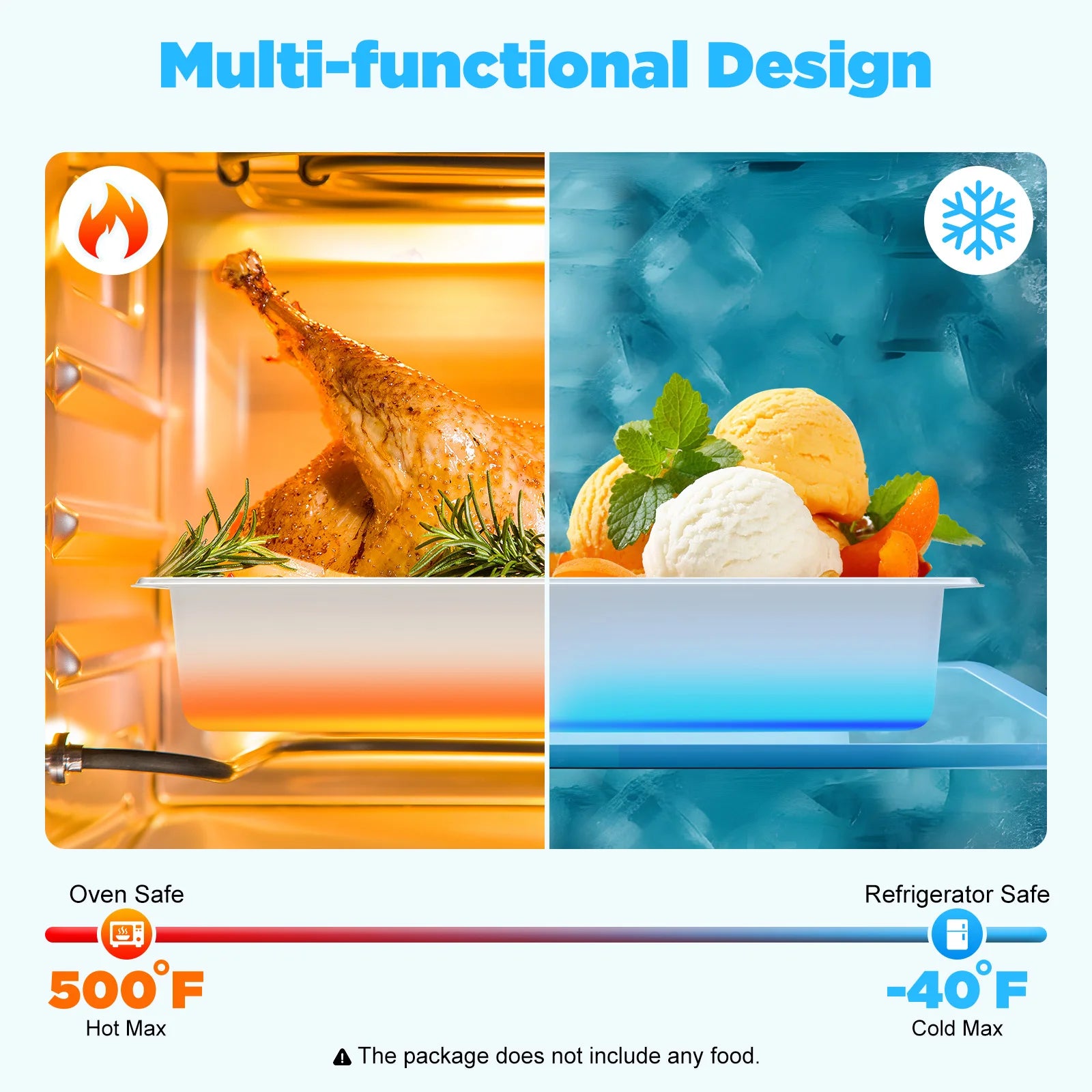 4 Pcs Table Pans with Lids Buffet Chafing Dishes Stainless Steel Food Container for Commercial and Personal