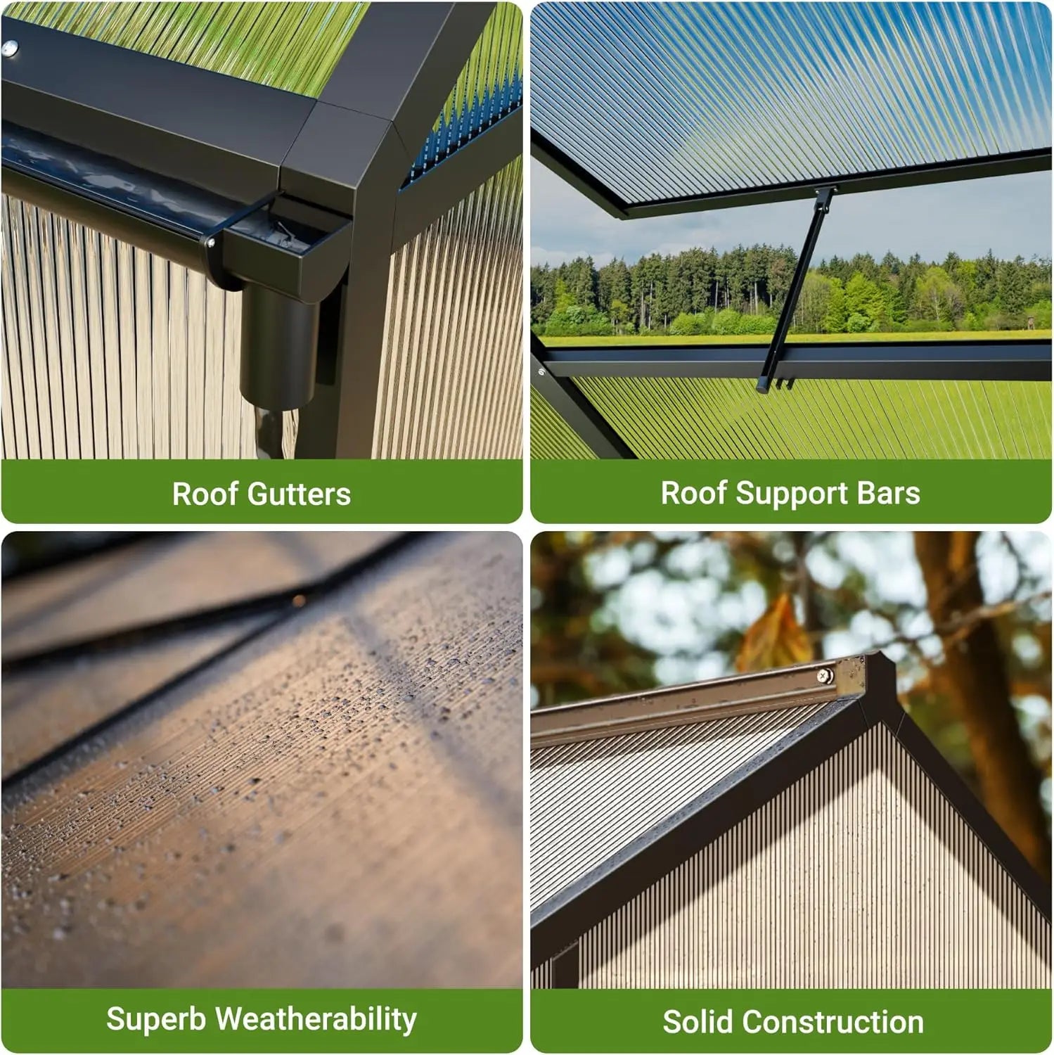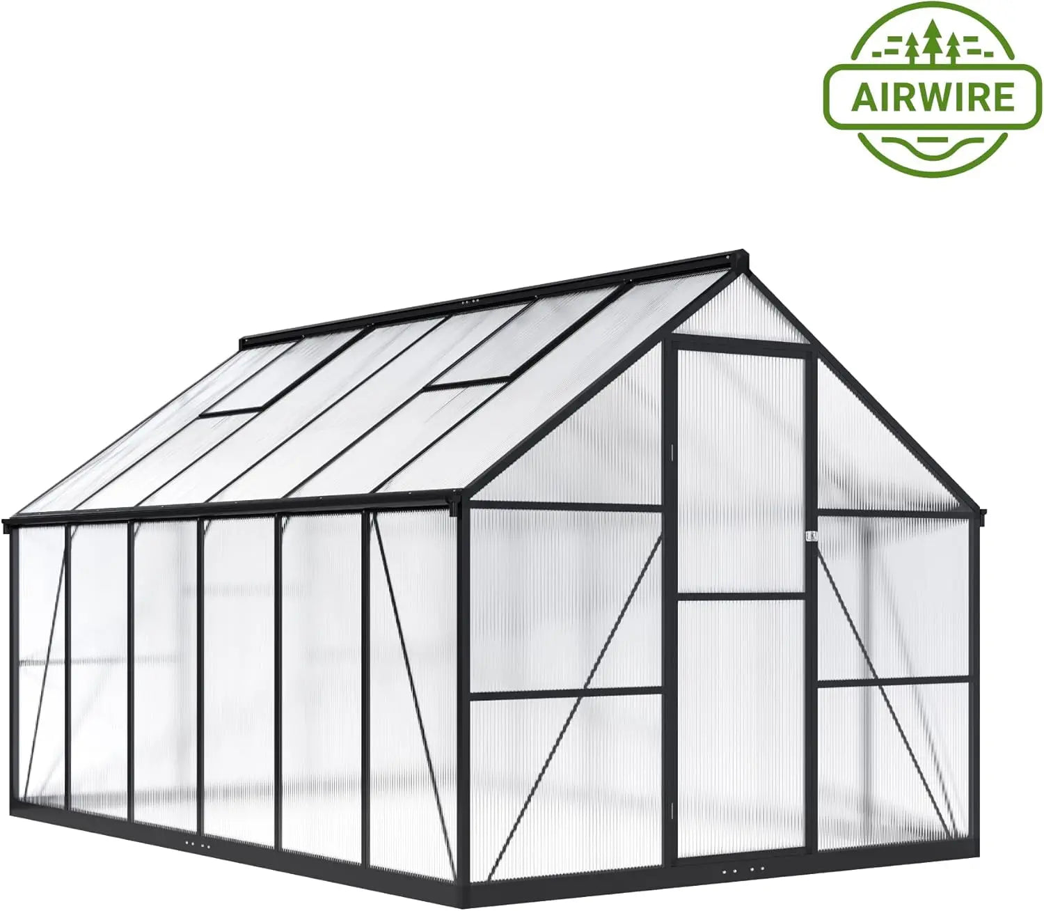 8x12 FT Greenhouse for Outdoors, Quick Setup Polycarbonate Greenhouse with Roof Vent,