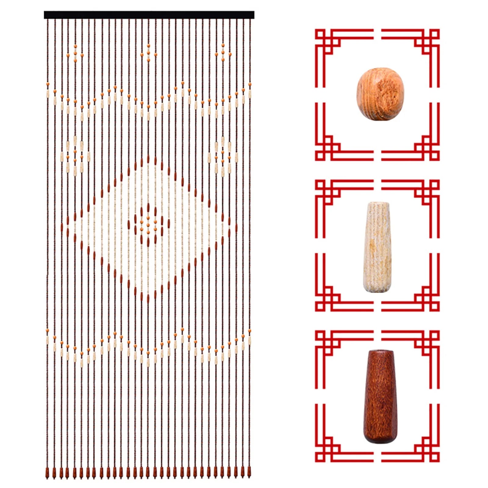 90x208cm 31 Line Retro Wooden Bead Curtain Blinds Door Curtain For Porch Bedroom Living Room Bathroom