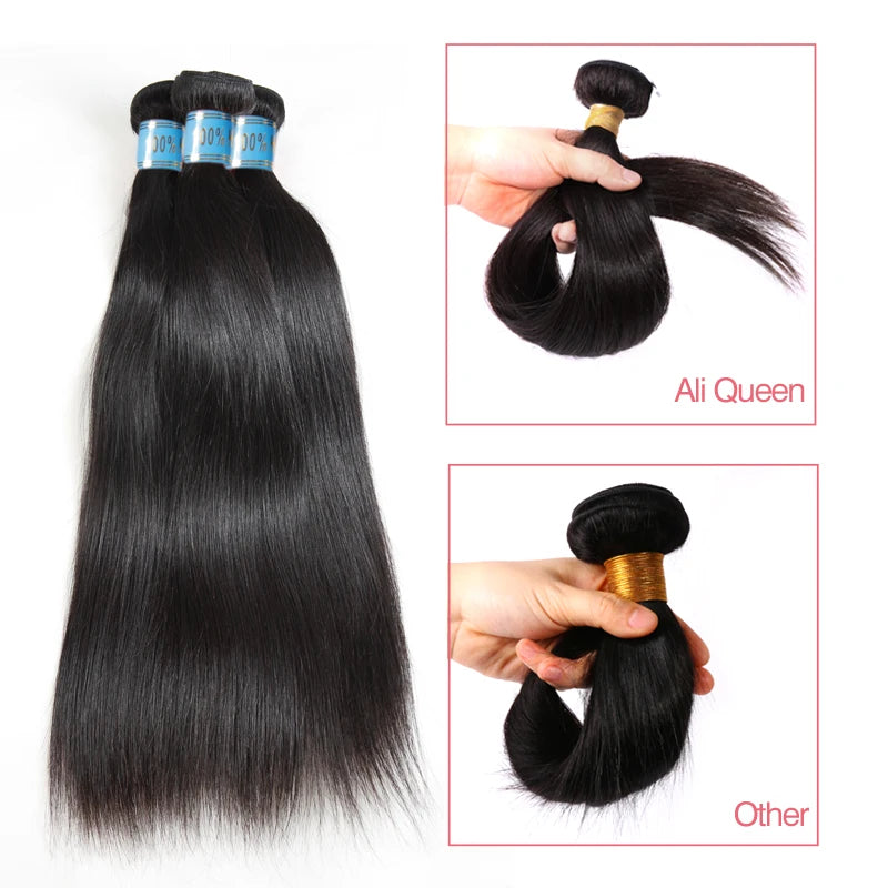 Ali Queen Hair Peruvian Straight Raw Virgin Human Hair Bundles 8"-28" Natural Color 3/4pcs Double Drawn Human Hair Extensions