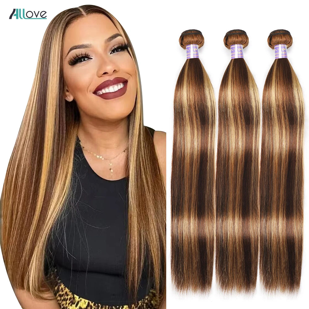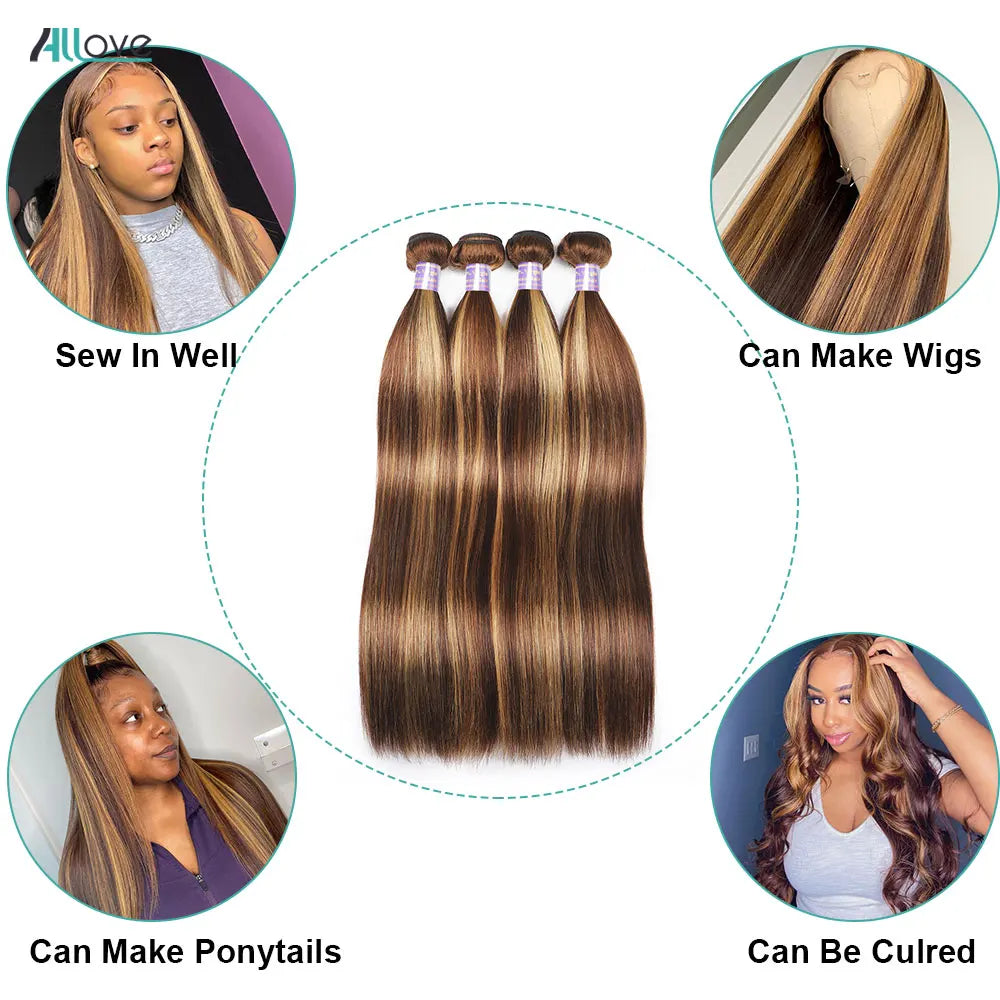 Allove 30 32 Inch Highlight Bundles Human Hair Bone Straight Human Hair Bundles Ombre Honey Blonde Brazilian Remy Hair Extension