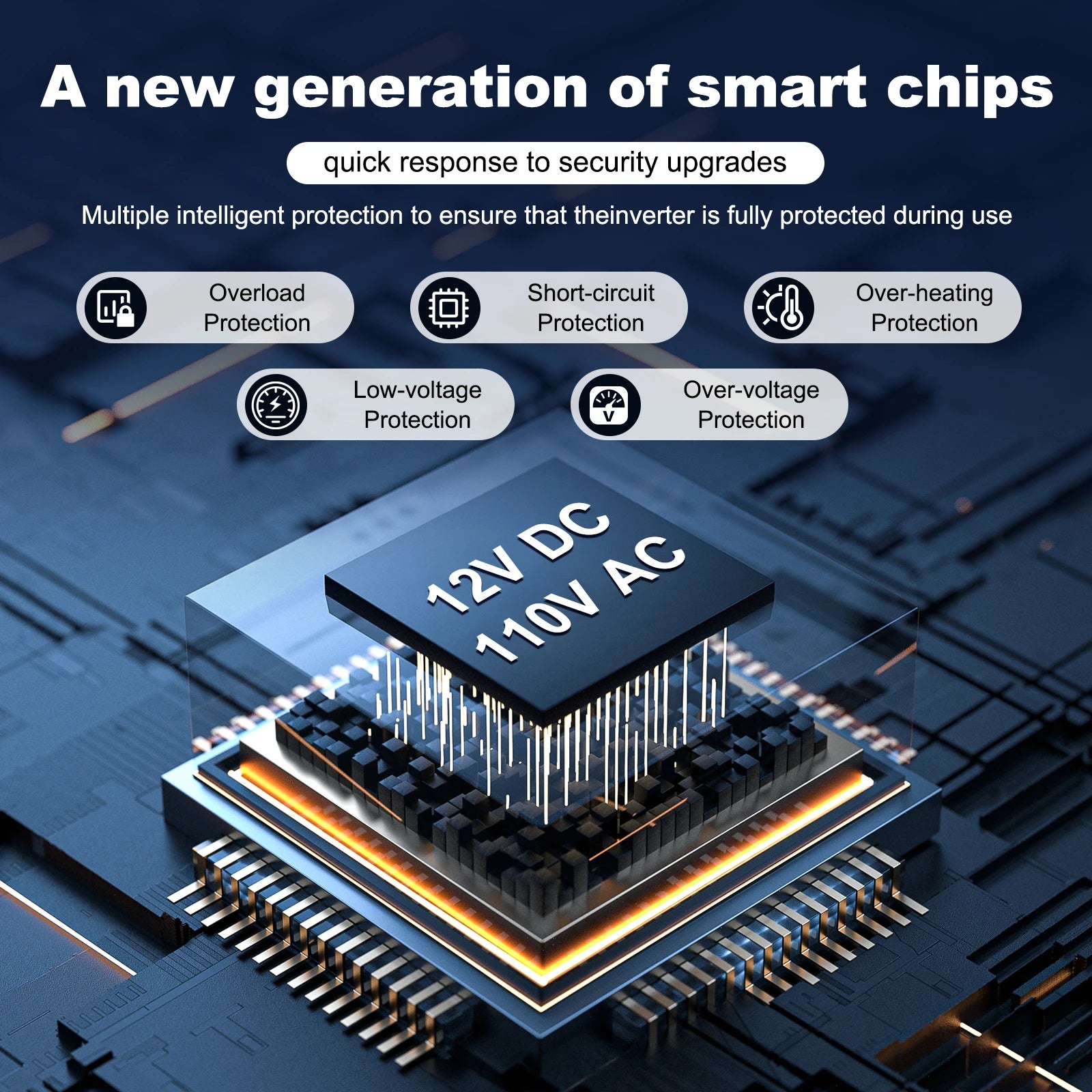 Car Converter Power Inverter DC 12V To AC 110V Sine Wave Solar Power Converter LCD Home RV Solar Adapter 4 USB Ports