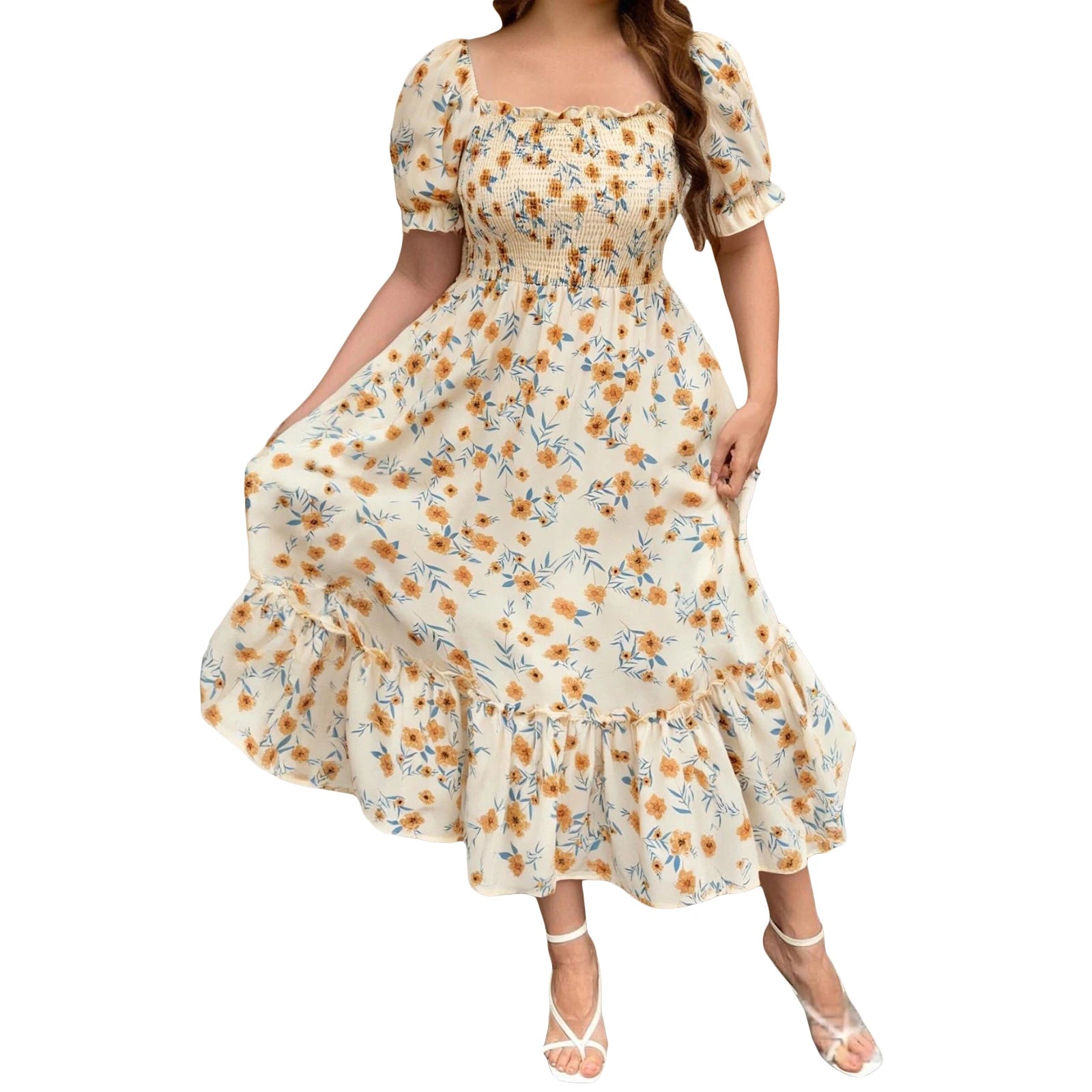 Elegant Plus Size Maxi Dress with V-Neck and Ruffle Sleeves Perfect for Summer Parties and Special Occasions