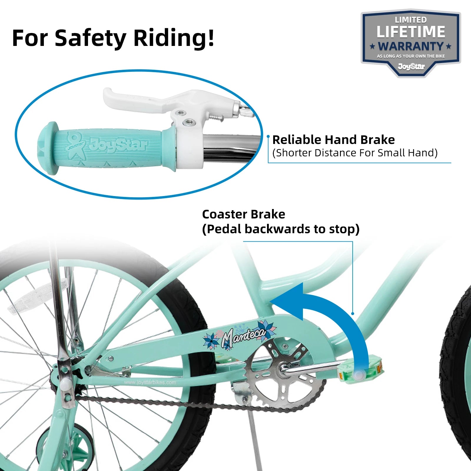 JOYSTAR 20 Inch Girls Bike with Training Wheels, Banana Seat Bike for Girls Ages 7-12 Years Old with Handbrake and Coaster Brake