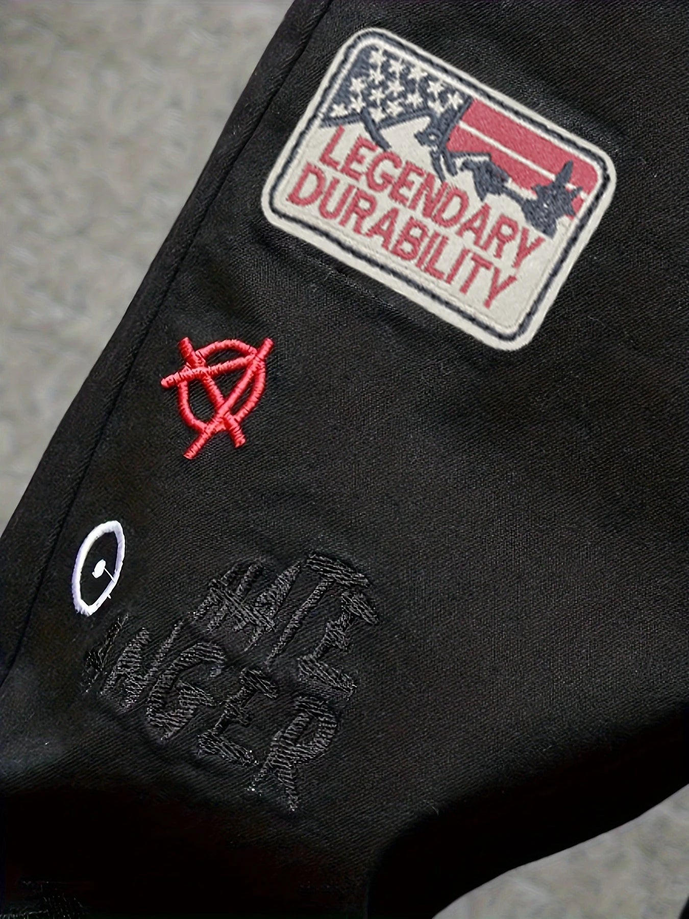Men's slim fit jeans embroidered elastic straight leg denim pants