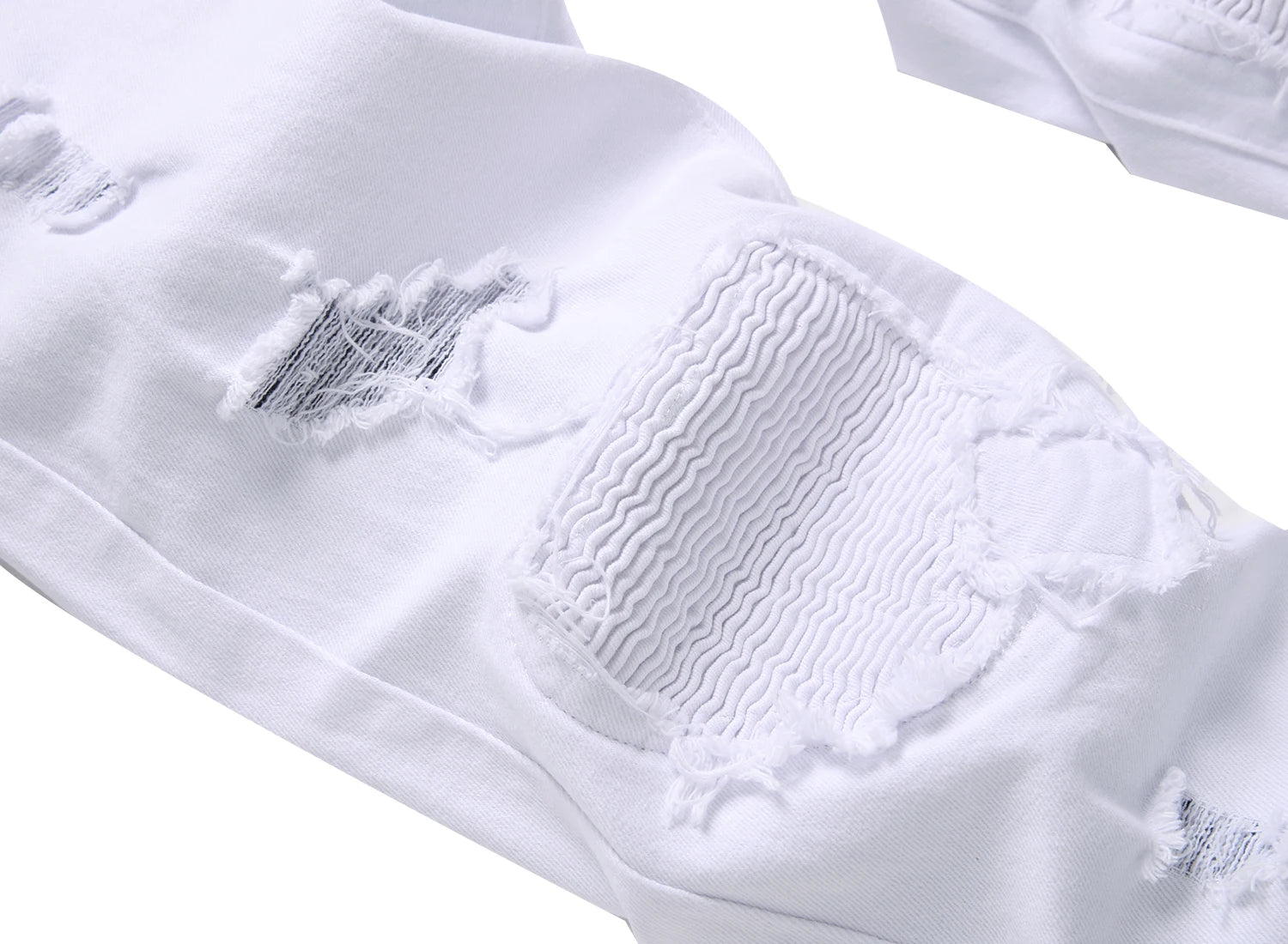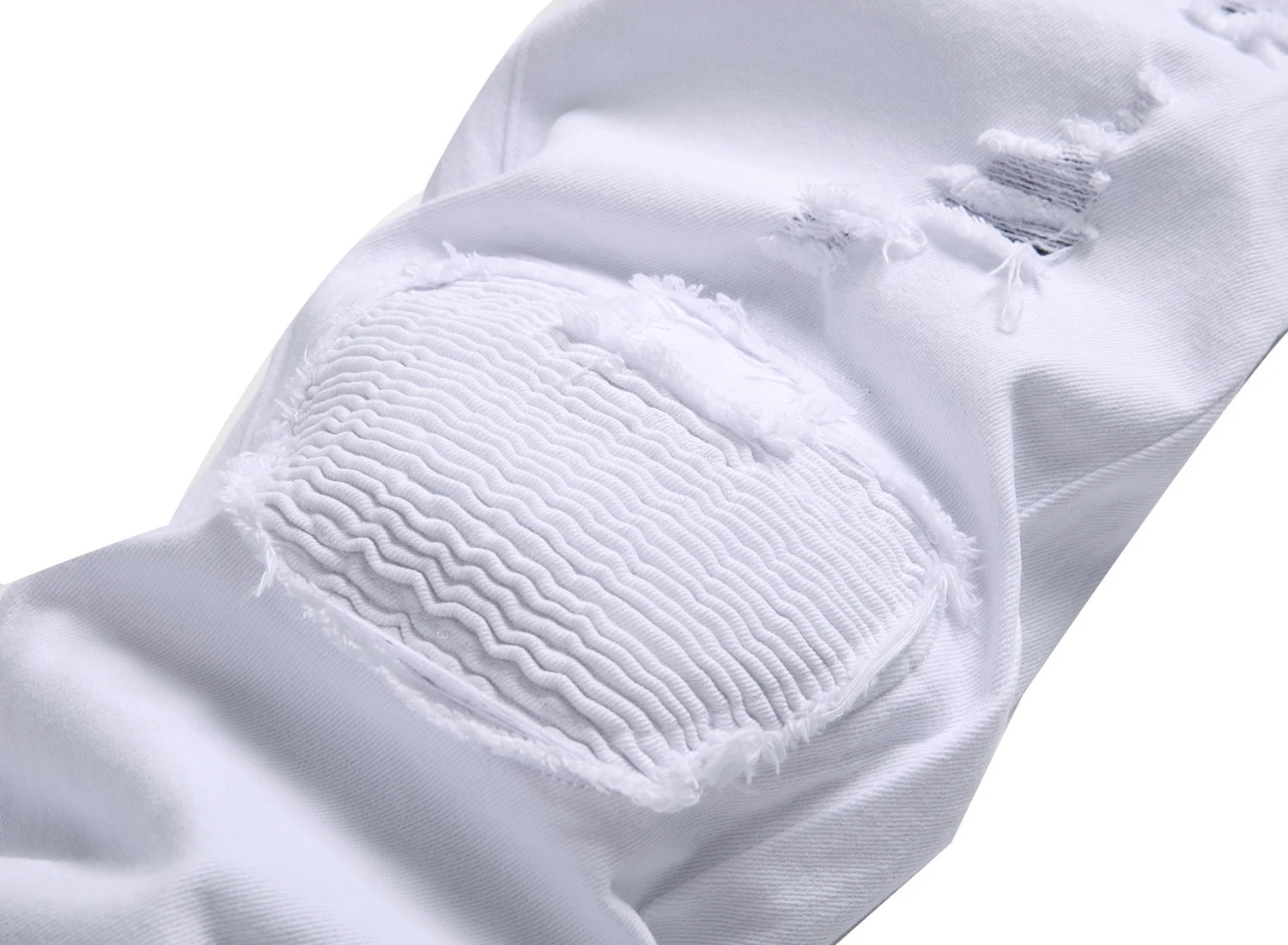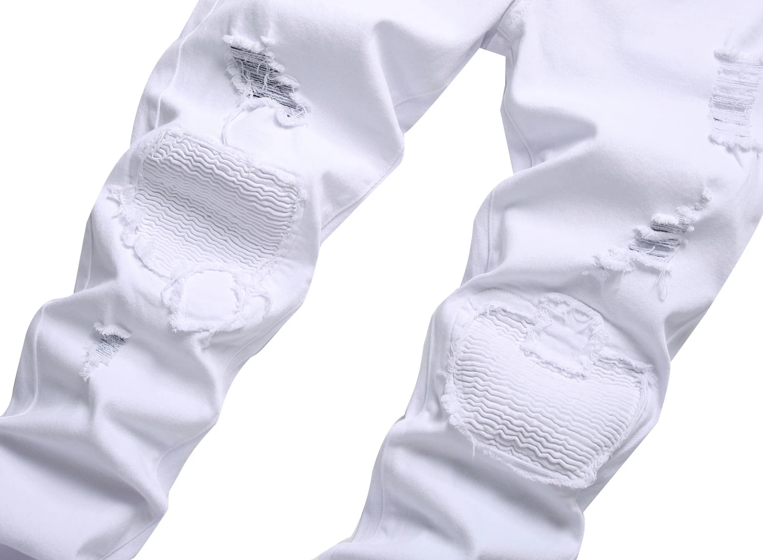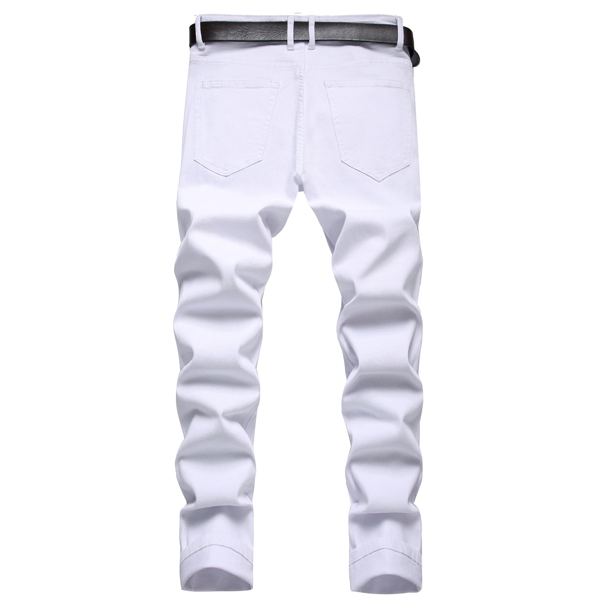 Men's White Slim Straight Biker Jeans, Fashion Hole Casual Jeans, Suitable for All Seasons 1091W