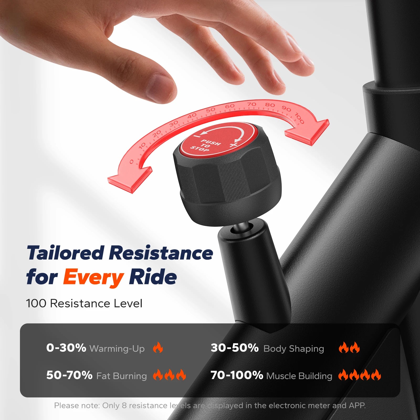 Special Feature: Self-developed FantomFite gaming App, 330LBS Weight Capacity, Self-developed Merach App, Heavy Duty Flywheel, Extra Large High-density Seat