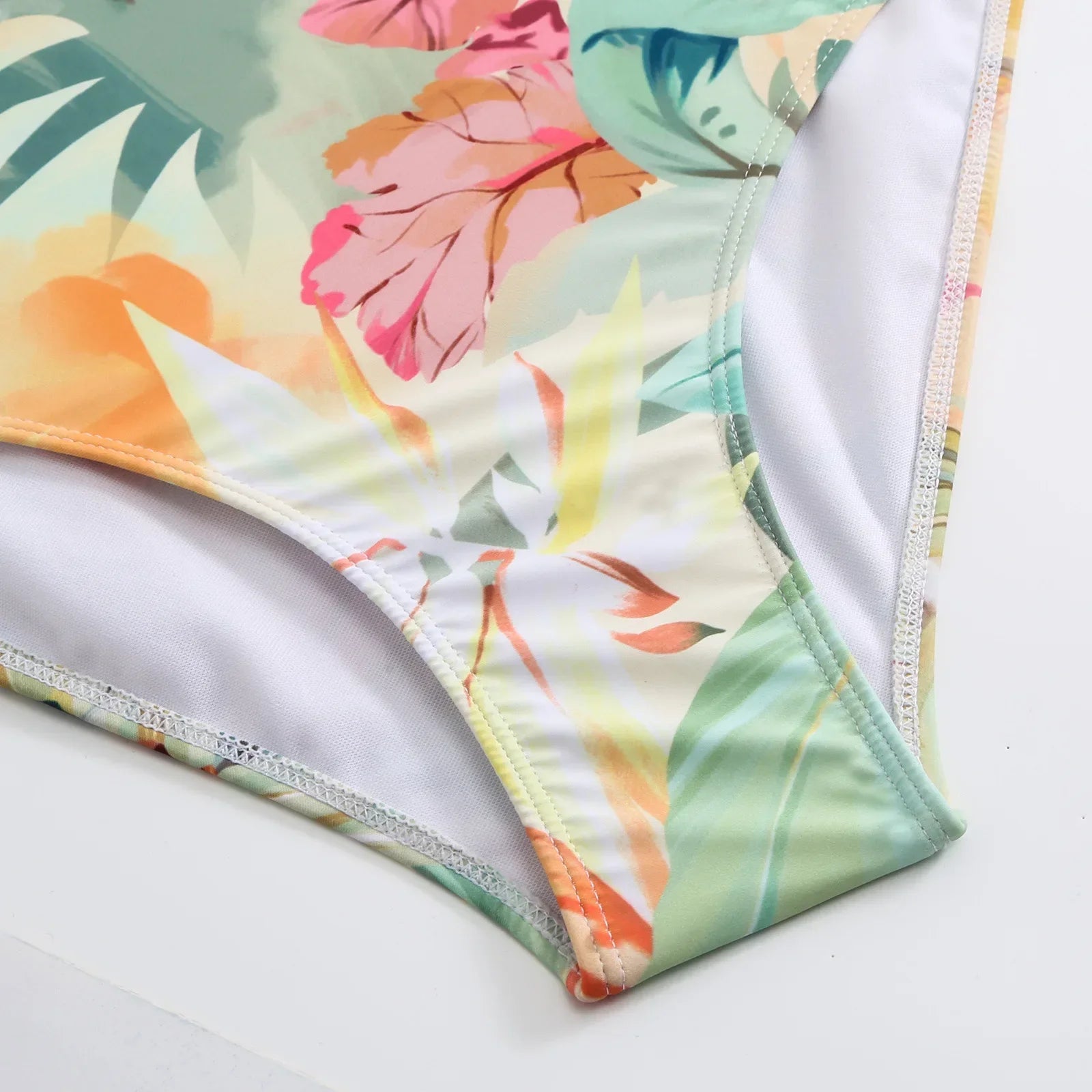 One-piece Bikini Set 2024 Women Floral Print V-neck Swimsuit Sexy High Waist Beach Skirt Bathing Suit Swimwear Summer Monokini
