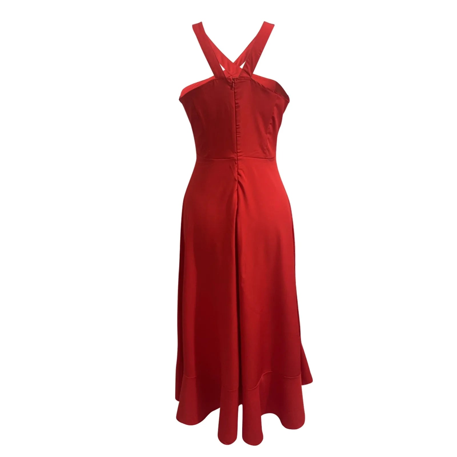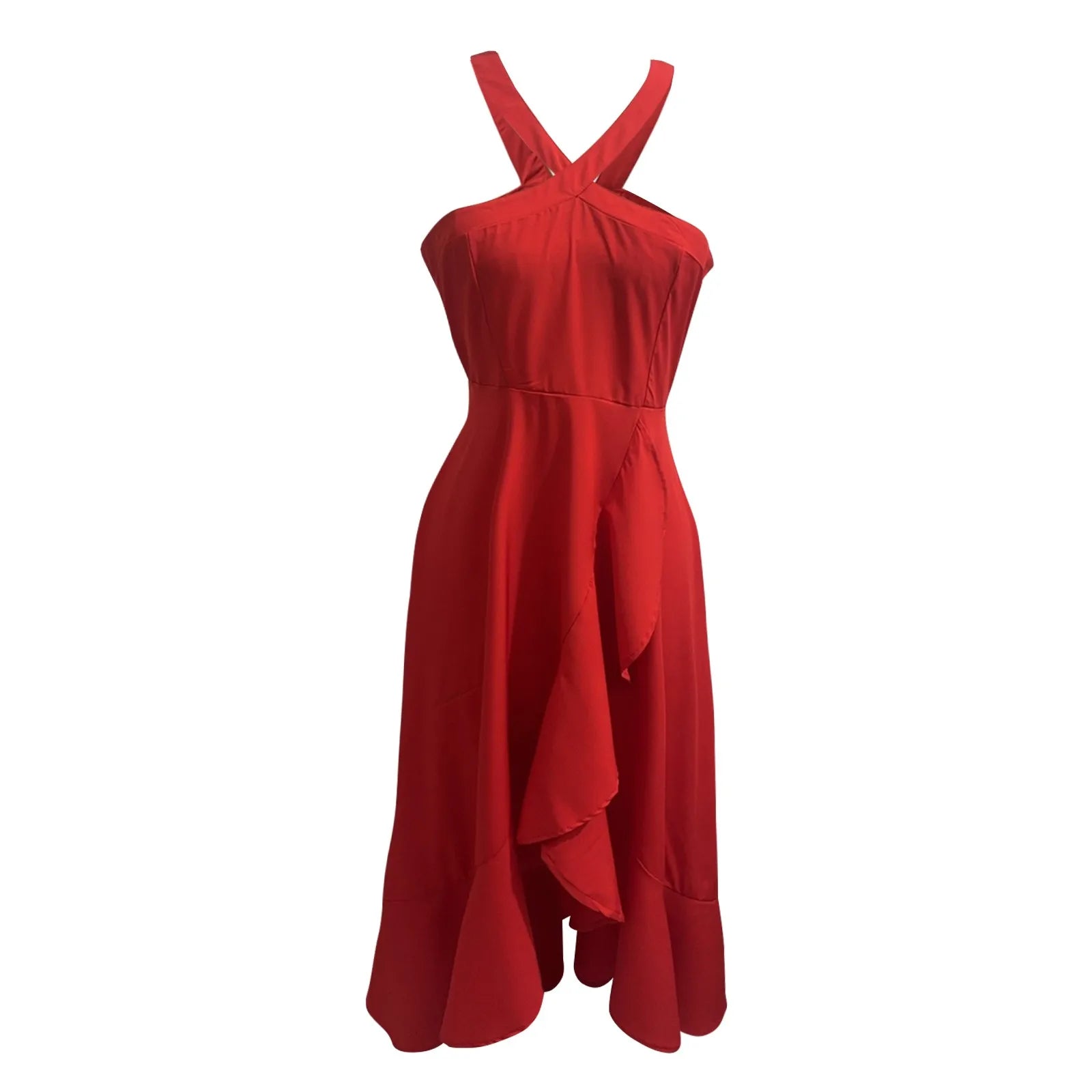 Party dresses for women Elegant halterneck sleeveless sexy evening dress Solid Color Ruffle design long dresses vestidos curtos