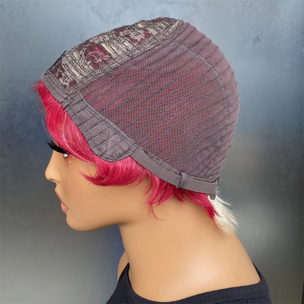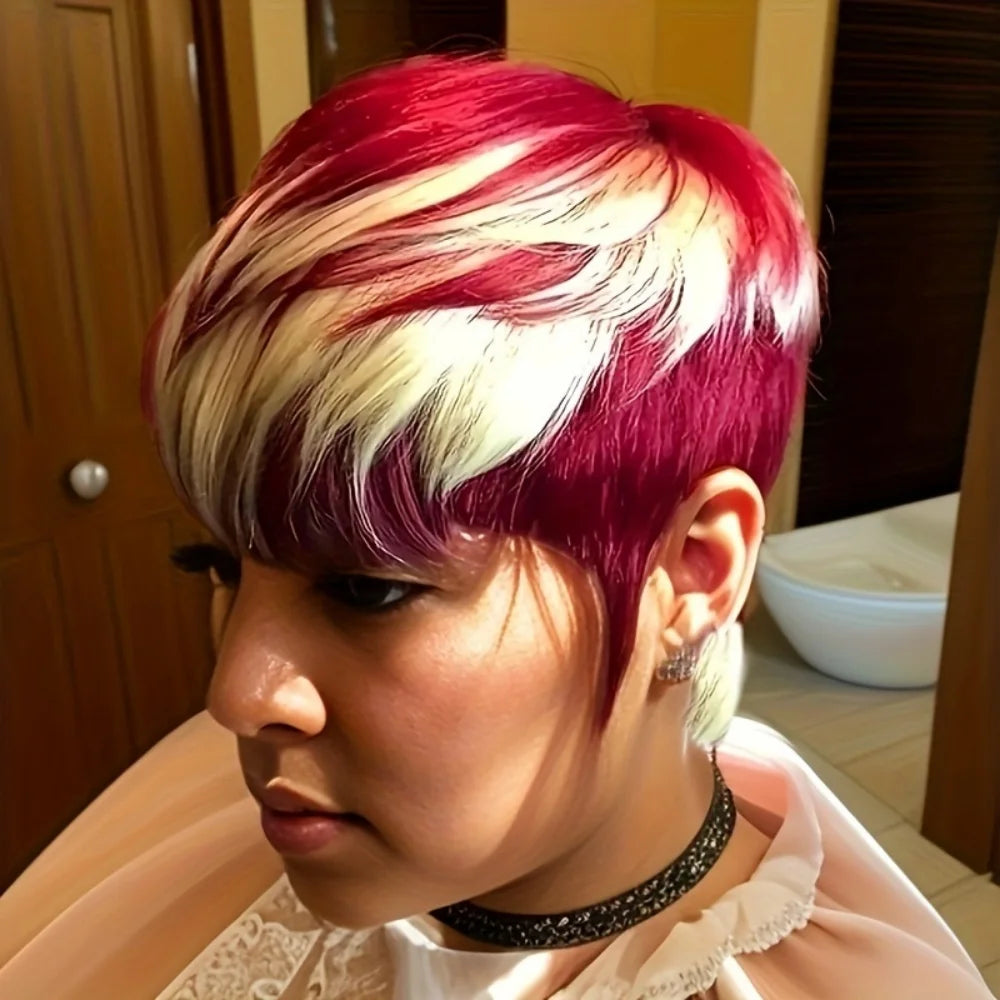 Short Pixie Cut Wig Human Hair For Women 6 inch 613/red straight hair Machine Made Wigs With Bangs Short Wig Human Hair Wigs