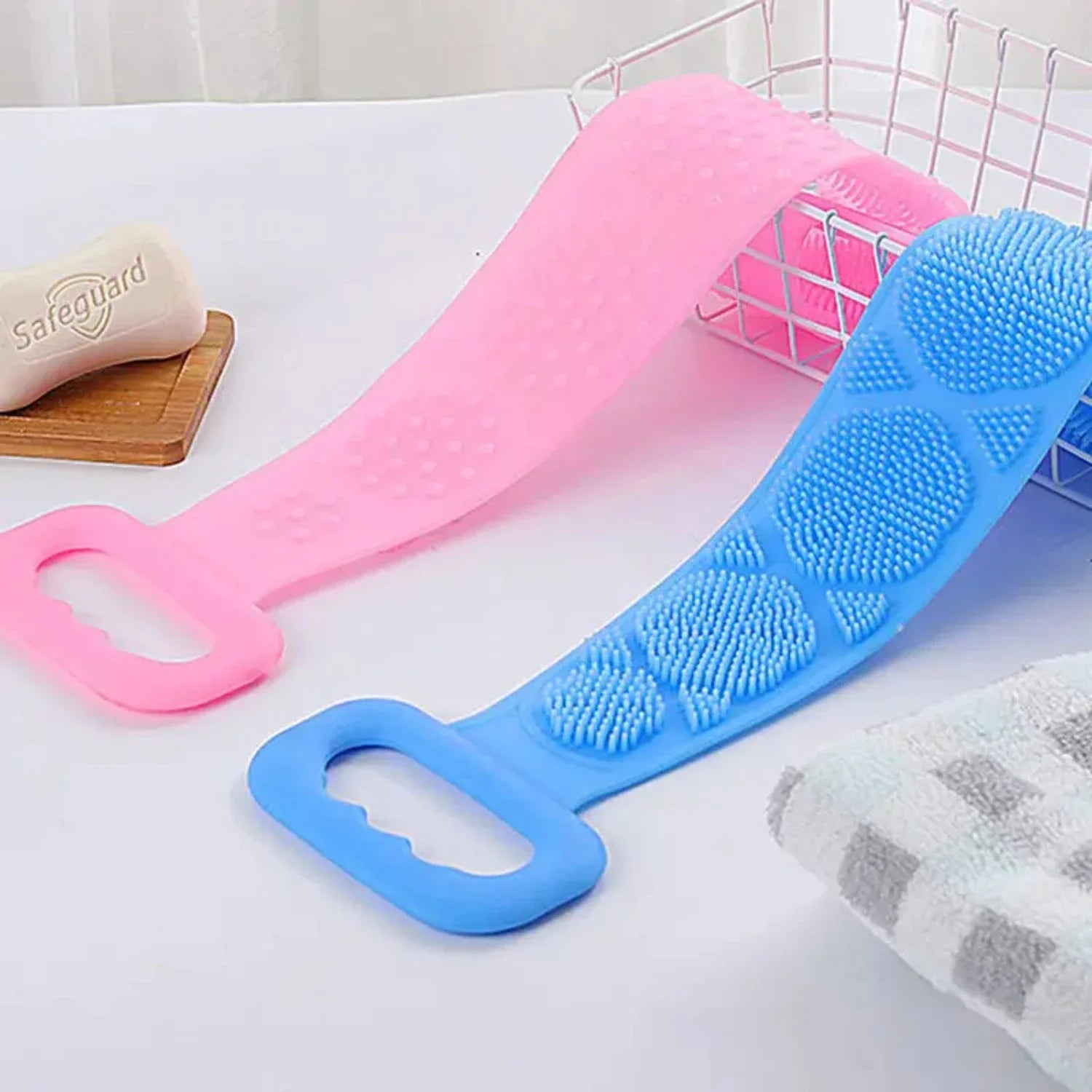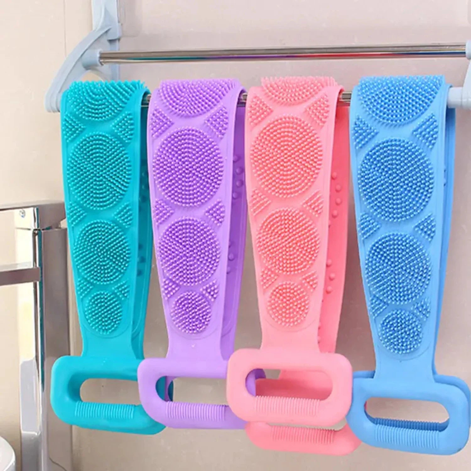 Silicone Back Scrubber For Shower - 1 Pc Long Handle Exfoliating Body Scrubber with Soft Bristles - Shower Back Scrubber for Dee