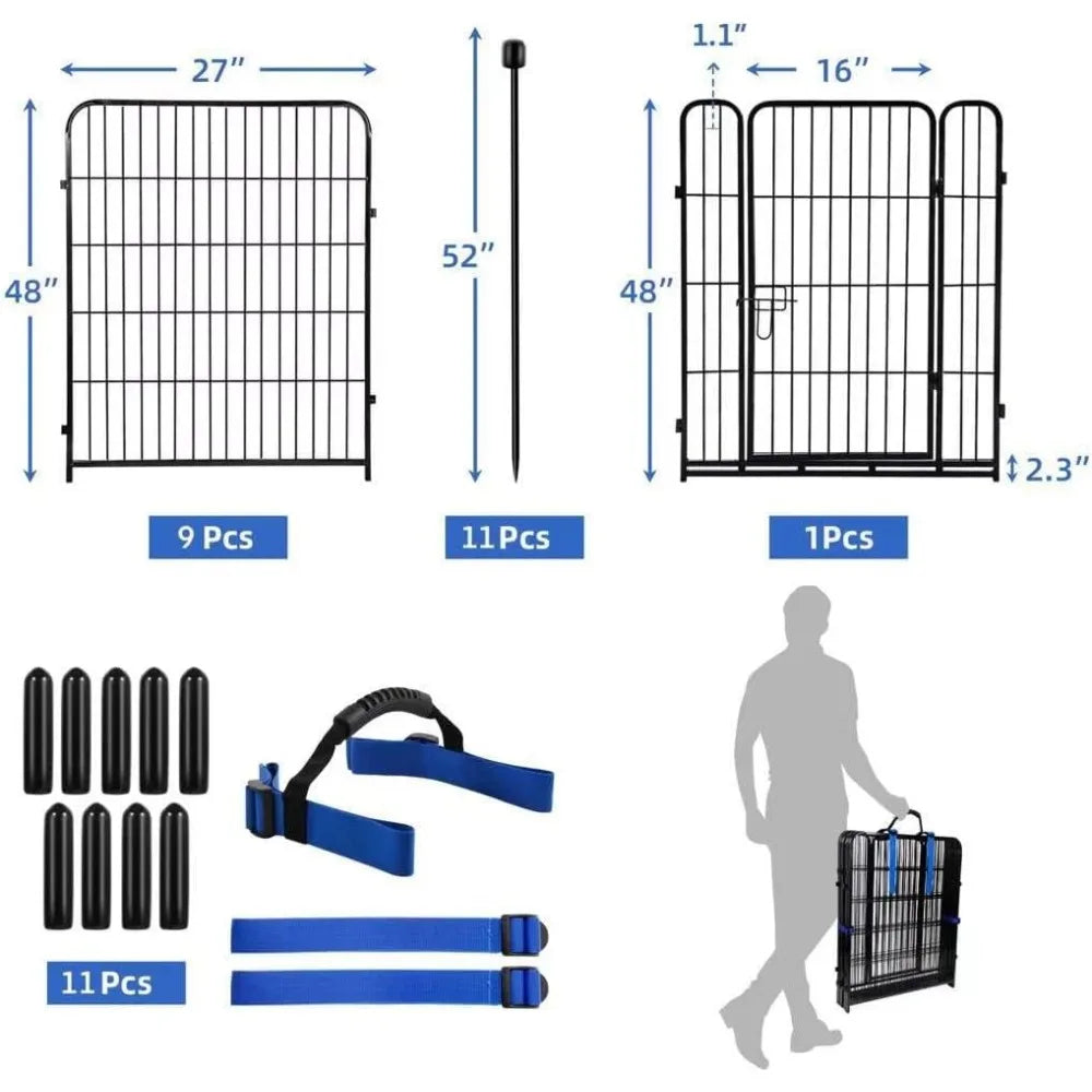 Tall Garden Fence, 48 in(H) 10 Panels Heavy Duty Iron Metal Animal Barrier Fence, Indoor or Outdoor Dog Playpen,