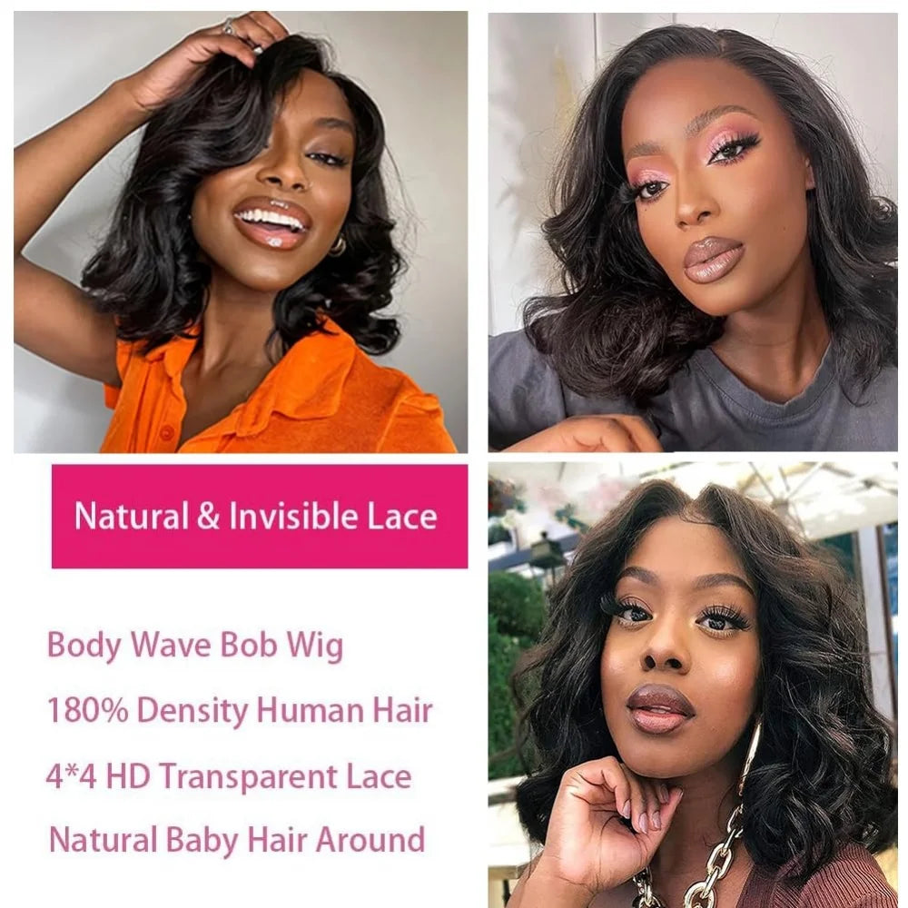 Wear and Go Glueless Bob Wig Body Wave Lace Front Human Hair Wigs for Women 4x4 No Glue wigs Suitable for Beginners 12-16inch