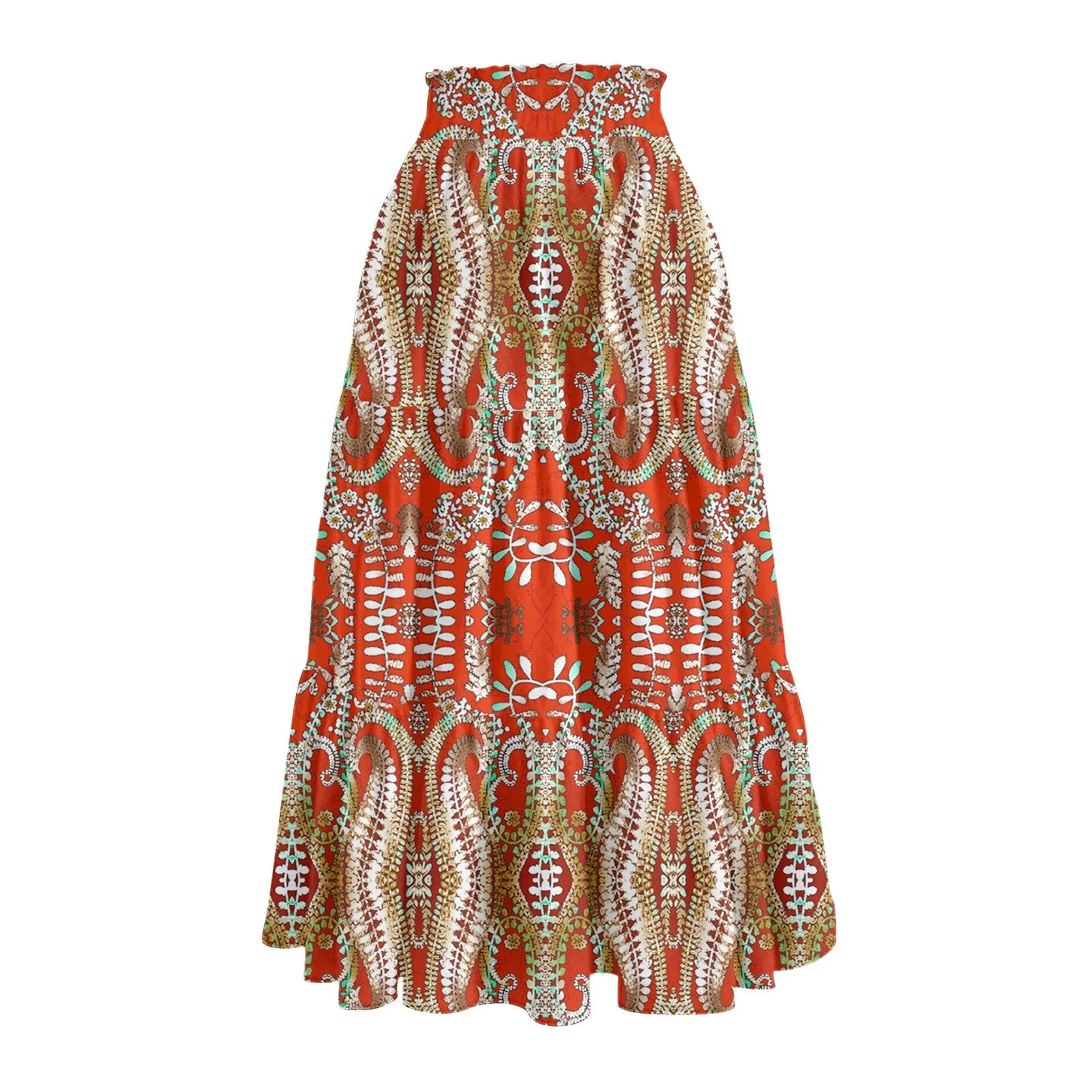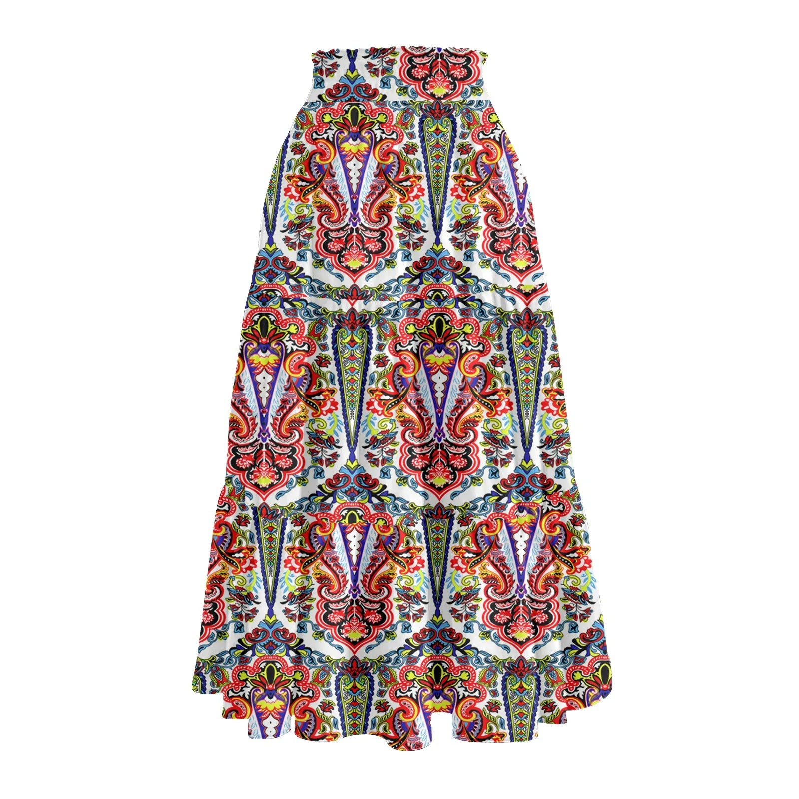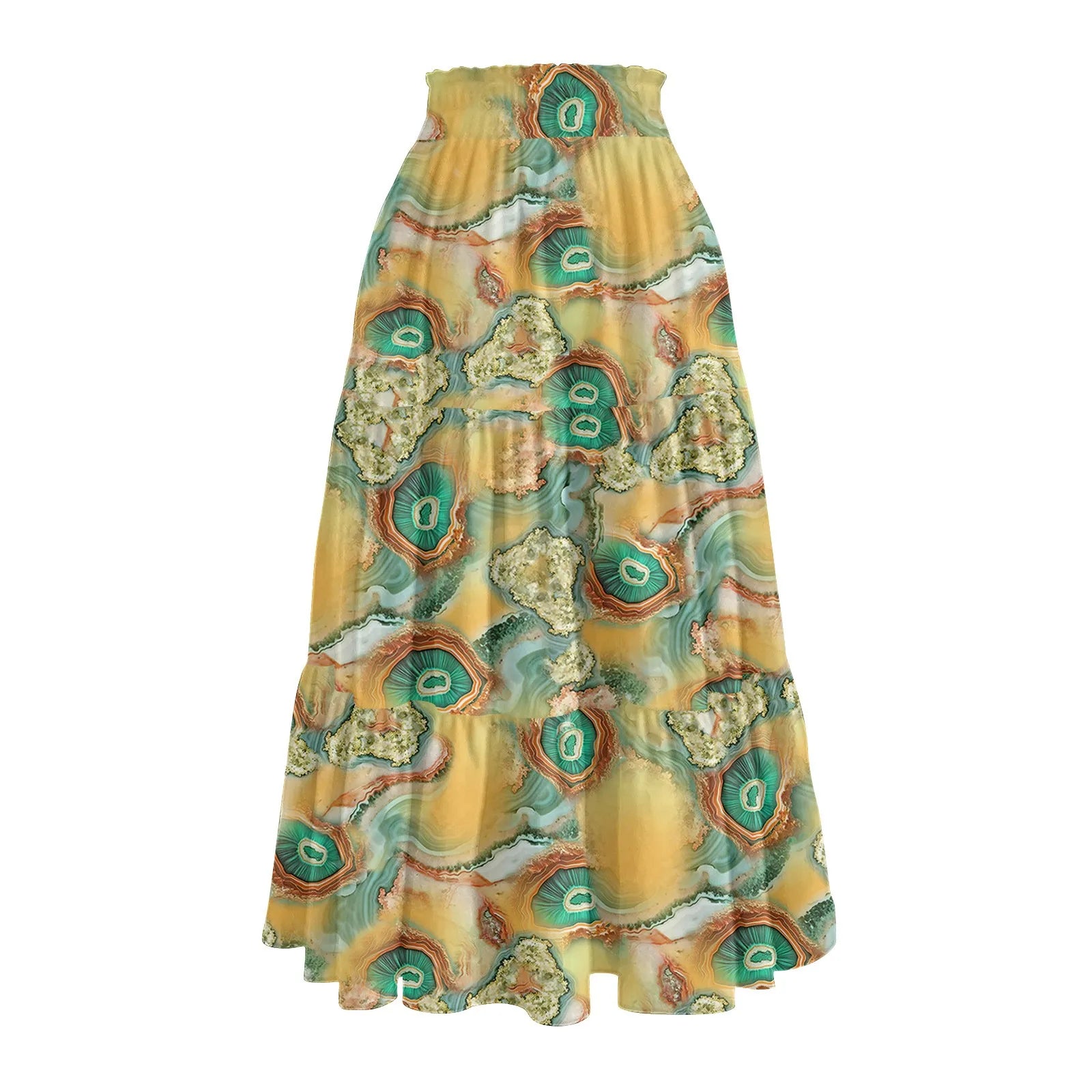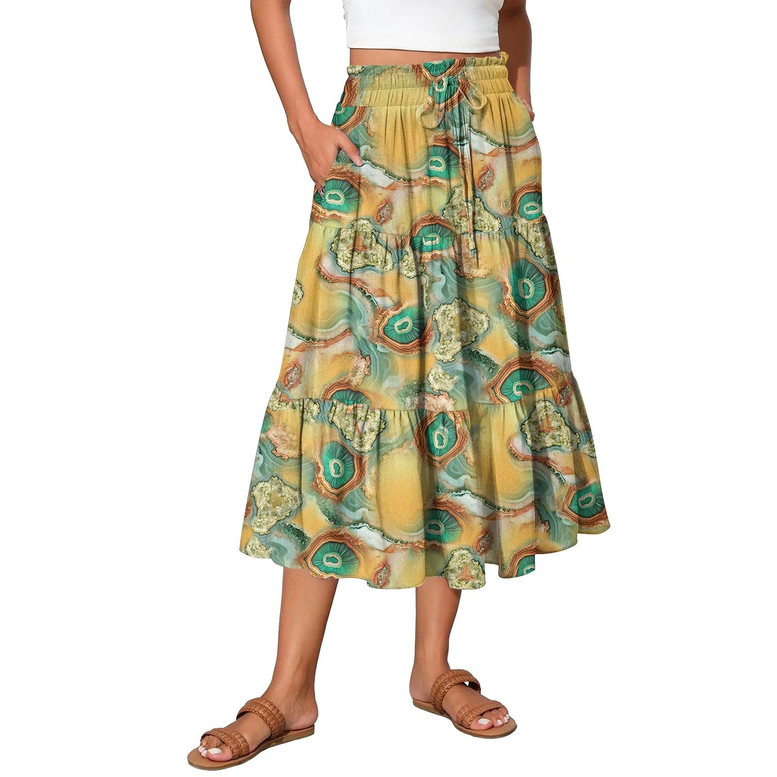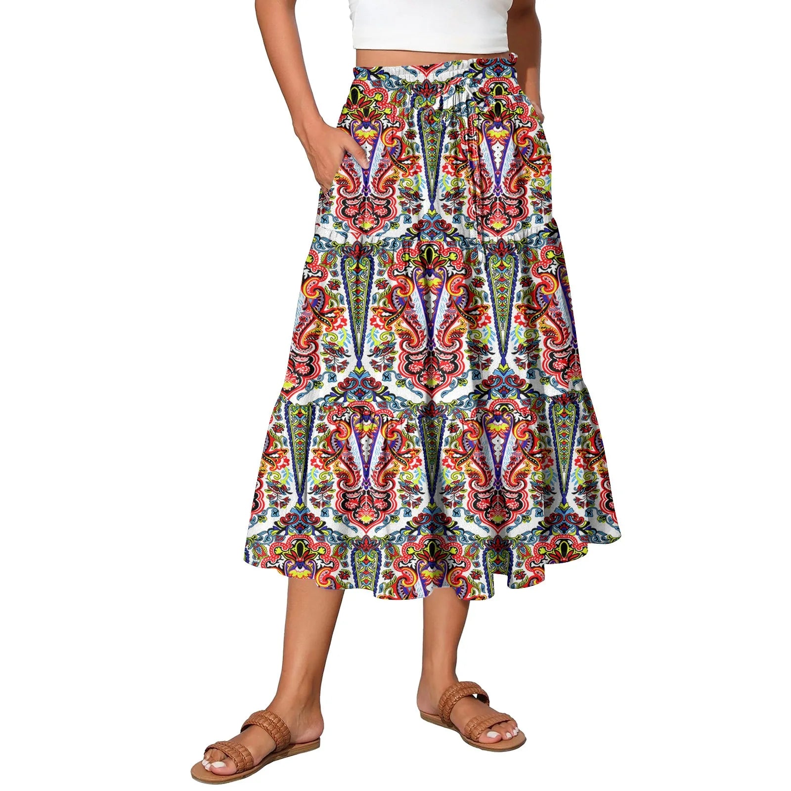 Womens Maxi Skirt Drawstring High Waisted Summer Long Skirts Lightweight Tiered Flowy Floral Pleated Skirts Vestidos Para Mujer