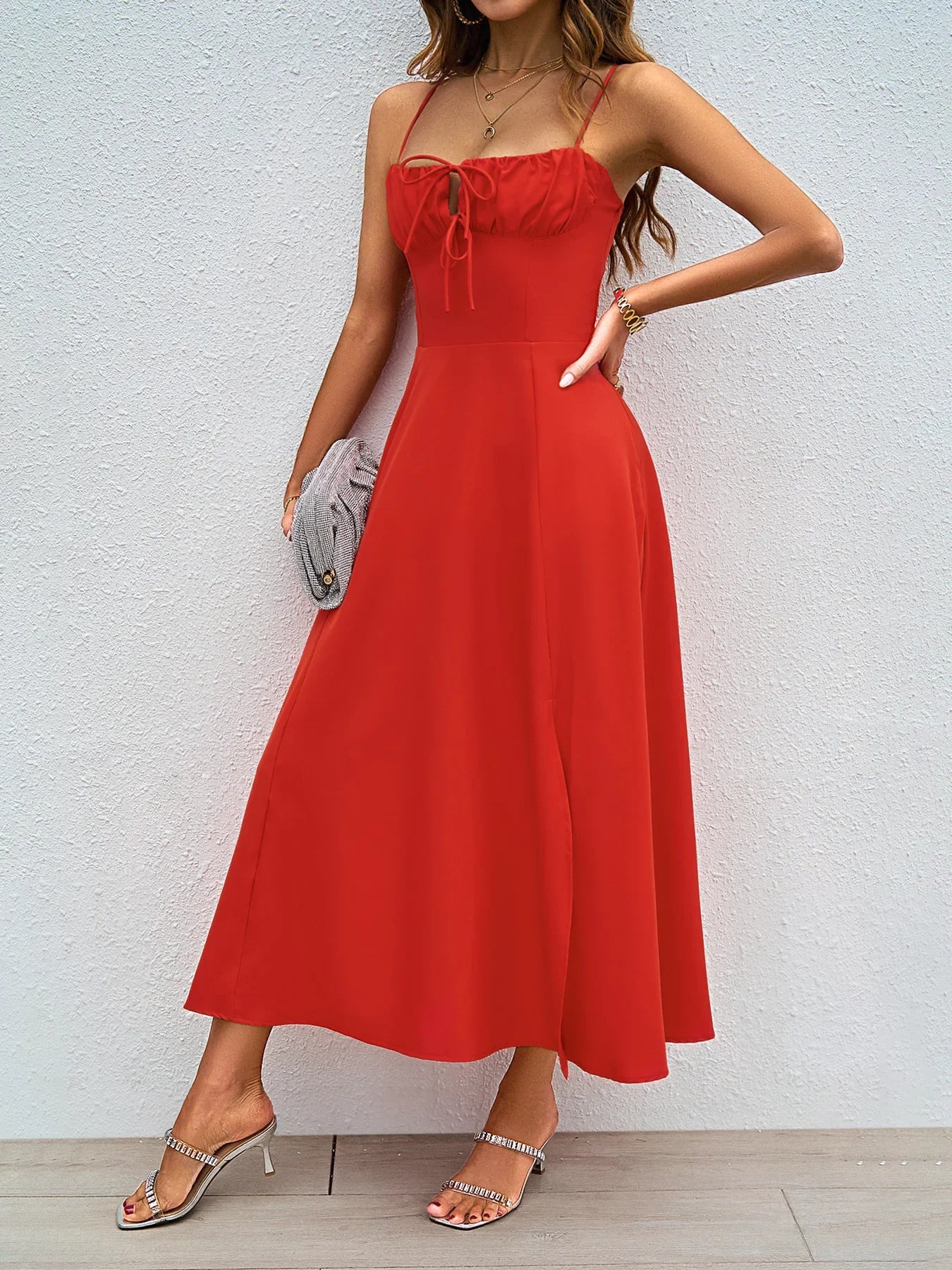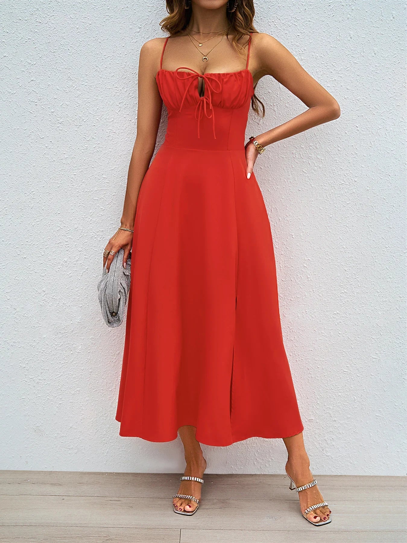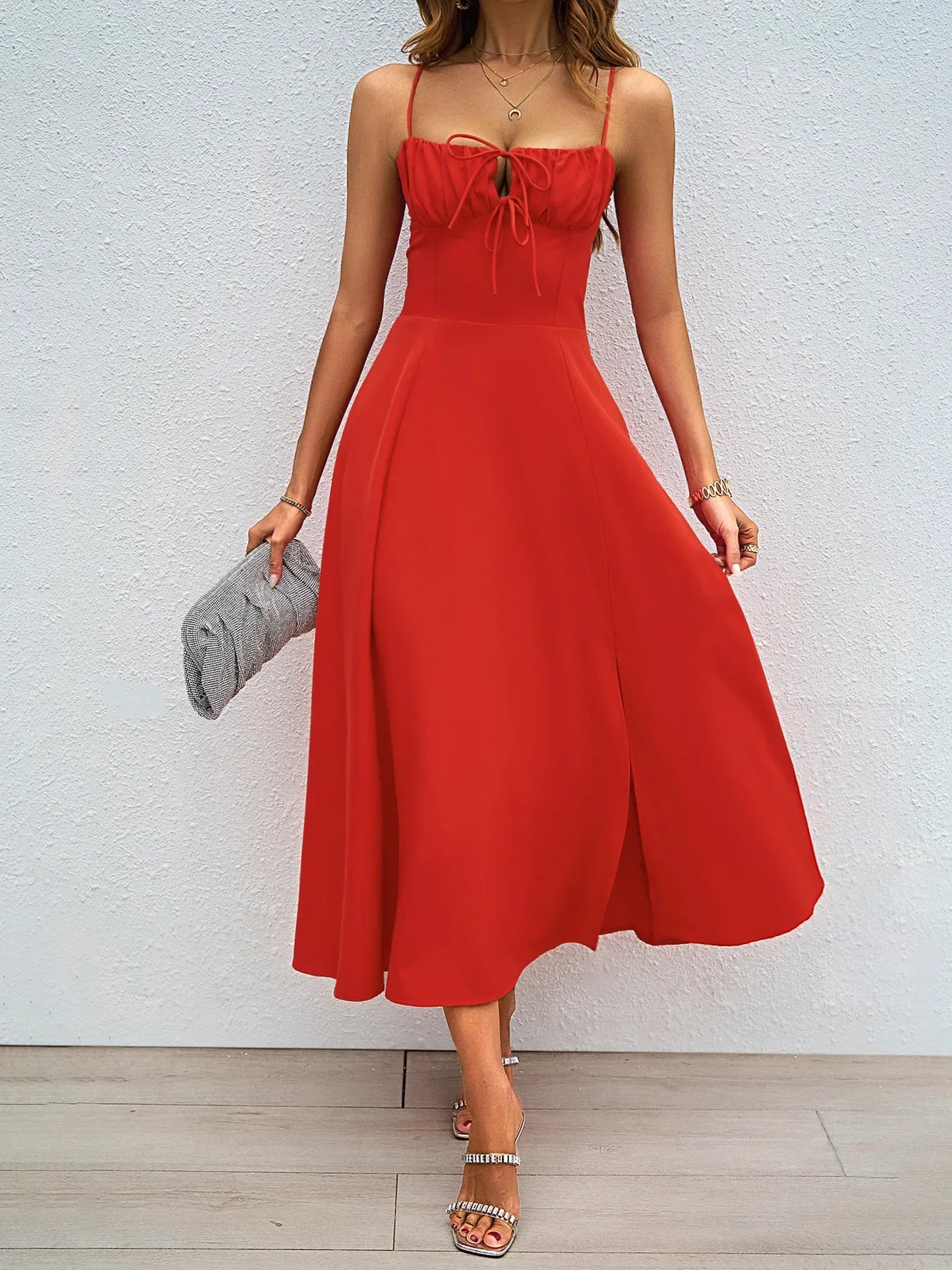Women's Red Dress Solid Color Elegant High Waist Suspender Backless Long Dress Sexy Slim Fit High Slit Evening Gown Dress 2024